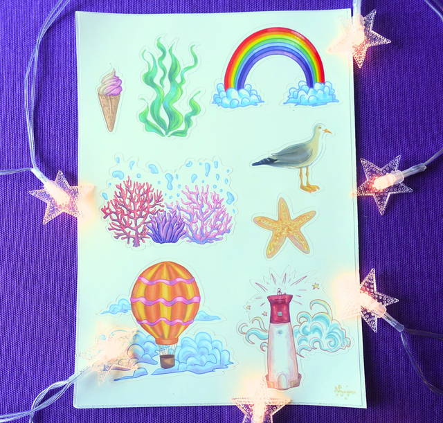 Planche de 8 stickers, format A5 (14,8x21 cm).